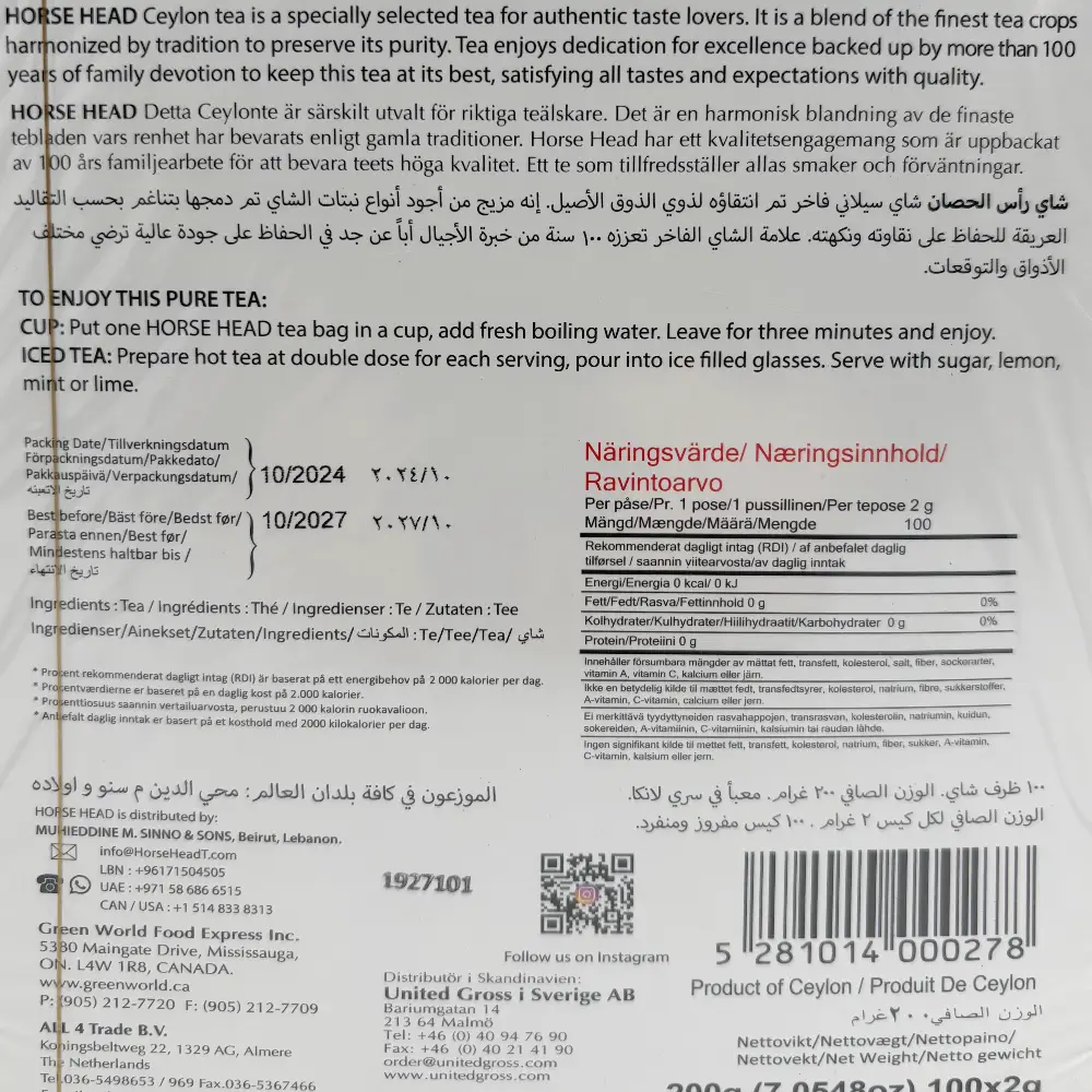 Bli först med att recensera ”Hästhuvud Ceylon svart te påsar” Avbryt svar