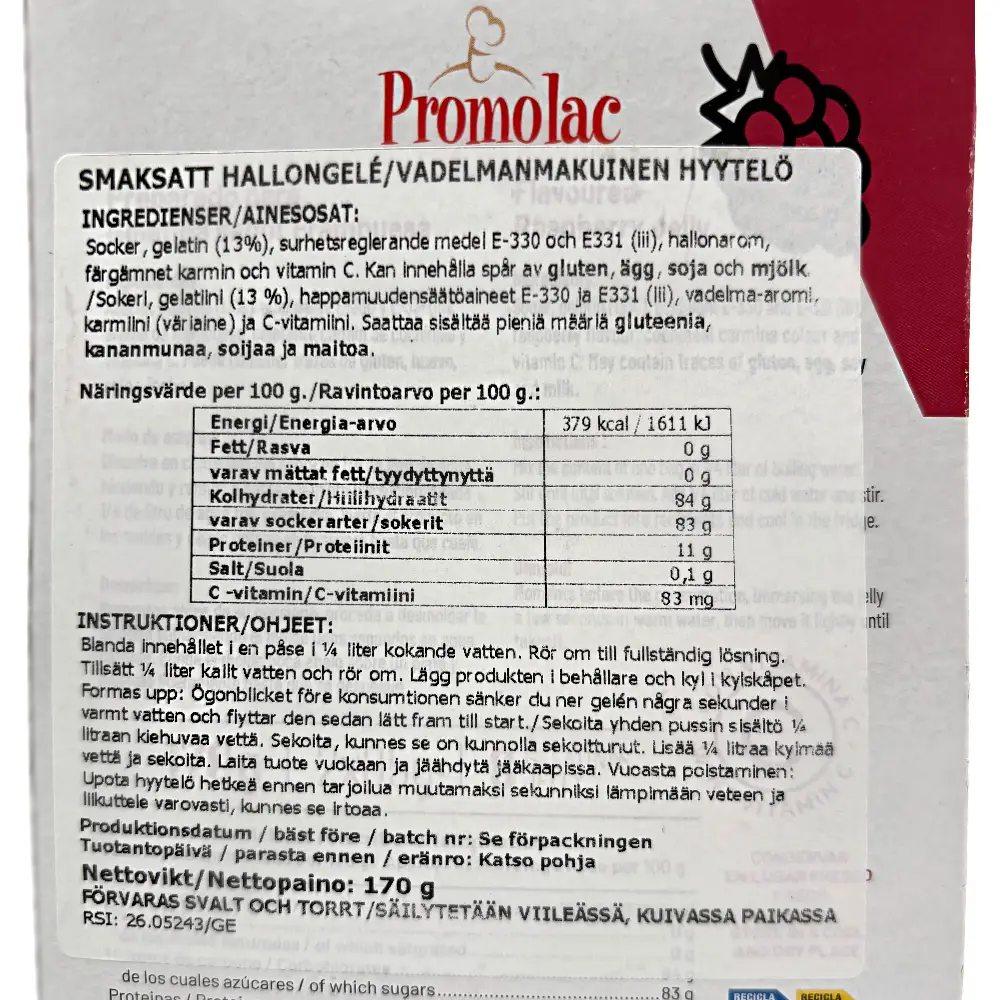 Promolac hallonsmaksatt gelatin