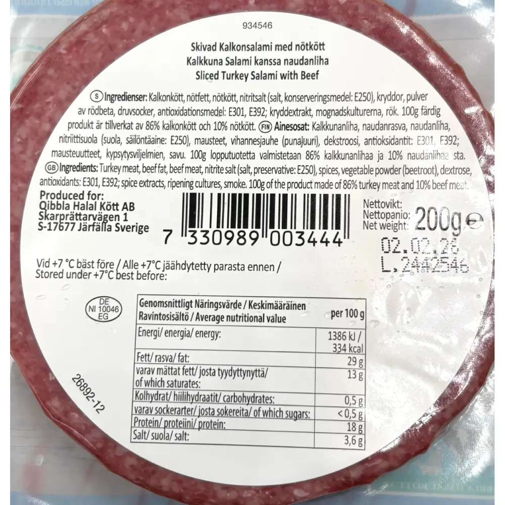 Qibbla Halal Kött AB Kalkonsalami med nötkött